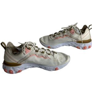 Upgrade your shoe collection with the Nike Womens Epic React Element 55 Size 11 Lifestyle/Running Shoes. These sneakers feature a lace-up closure, low top shoe shaft style, and a beige color that adds a touch of elegance to any outfit. The Nike Epic React model is designed with a lightweight feature that makes it perfect for any season, whether it's winter, summer, fall or spring.