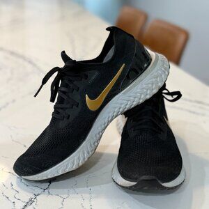 Nike Women's Epic React Flyknit 'Metallic Gold' Sneakers | Style AQ0070-013 | Size 9