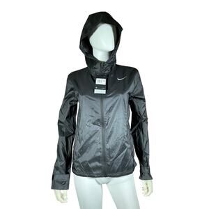 The Nike Essential Jacket helps keep you running when wet weather arrives. Water-repellent fabric combines with hooded coverage to help you stay dry for miles.