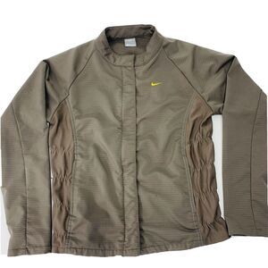 Nike Womens Fit Dry Full Zip Jacket Running Training Stretch Sz S Taupe Nice