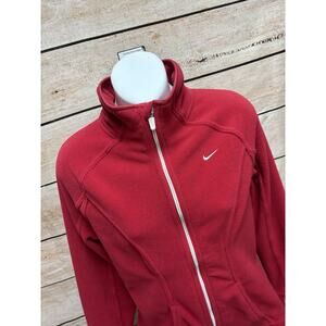 Nike Womens Fleece Jacket Size Small Red Full Zip Long Sleeve Coat