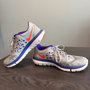 Nike Women's Flex Run 2015 Running Shoe Grey/Orange size 6,5.