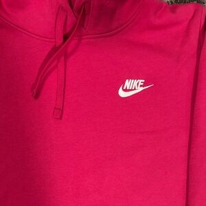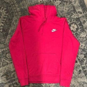 Vibrant fuchsia hoodie with classic Nike logo. Comfortable and stylish for everyday wear.
