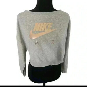 This Nike sweatshirt is perfect for any active woman looking for a comfortable and stylish option. The gray color and cropped length provide a trendy look, while the pullover style makes it easy to wear.