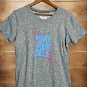 Nike Womens Gray Slim Fit T-Shirt Make Yourself Size Medium