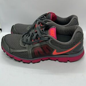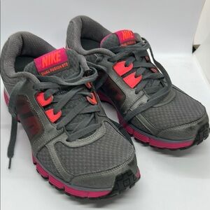 Stylish Nike gray shoes with charcoal base and hot pink highlights size 9 USA Perfect for workouts and casual wear. Prewoned