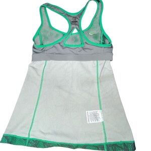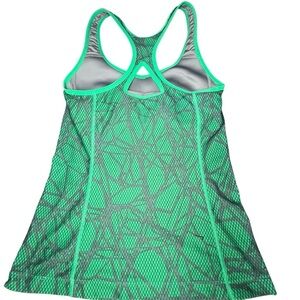 Make a splash with the Nike Green Swim Coverup, featuring a striking geometric pattern that adds a modern touch to your swimwear collection. Crafted from performance fabric, this coverup ensures comfort and style for your aquatic adventures. The unique racerback design enhances mobility, making it perfect for both lounging and active swimming. Second-hand but in perfect condition. There is no damage to the fabric or stitching.