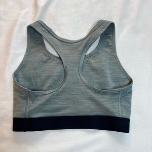 Stay supported with this Nike sports bra. Heathered gray design with black accents. Ideal for active wear.