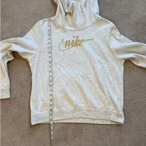 Nike Womens High Neck Gold Logo Hoodie Sweatshirt Size M Gray Fleece Athleisure