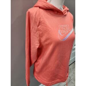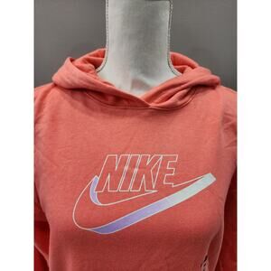 This Nike Women's Hoodie in size XS is a stylish and comfortable addition to any activewear collection. Made from a polyester blend material, this pullover hoodie features a solid pink color with a logo accent, perfect for any season. It has long sleeves, a hood, and convenient pockets, making it suitable for activities like walking and running. The Nike Sportswear product line ensures quality and performance, while the regular fit provides a comfortable and flattering silhouette. Easy to care for with machine washable instructions, this hoodie is a versatile and colorful choice for any workout.