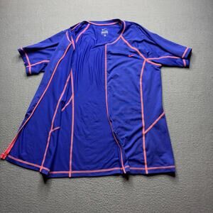 Nike Women's Hydro Rash Guard Short Sleeve Blue and Pink Full Zip - Size Medium