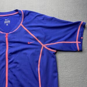 Nike Women's Hydro Rash Guard Short Sleeve Blue and Pink Full Zip - Size Medium. In excellent preowned condition - no stains or flaws. MSRP $65.