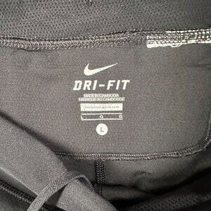 Nike Women's L Black Just Do It Spell Out Cycling Shorts Drawstring Pockets. Material/care tag has been removed. Back Zipper pocket.