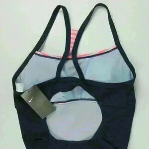 Nike Womens L Laser Stripe Logo Swimsuit NWT $88