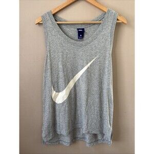 Nike Womens Large Heather Gray Tank Top Racerback Logo Athletic Workout Tee