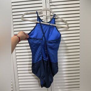 Nike Women's Laser High Neck Striped Tank One Piece Swimsuit