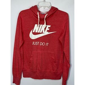 Nike Women's Long Sleeve "Just Do It" Scuba Fleece Hoodie Jacket Coral Medium