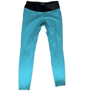 Nike Women's M Dri-Fit Leggings Teal Black Waist Back Zip Pocket Running Yoga