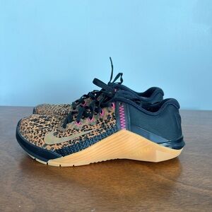 Nike Women's Metcon 6 Black Metallic Gold Chutney Cheetah At3160 096. Excellent condition, barely worn.