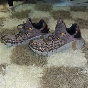 Stylish Nike women's sneakers. Features a purple mesh upper with black accents. Comfortable and trendy design.