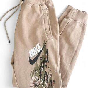 Nike Women's Mid Rise The Force is Female Embroidery Floral Tan Joggers Size XS