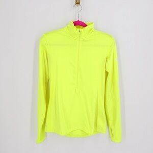 Bright neon yellow sweater with a quarter zip. Lightweight and stylish. Perfect for active wear.