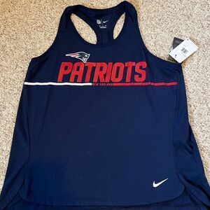 This listing is for a set of NWT's Nike racer back tank and shorts featuring the New England patriots. The top is navy blue in size XXL, and these shorts are charcoal gray in size XXL. Both feature the New England Patriots logo.