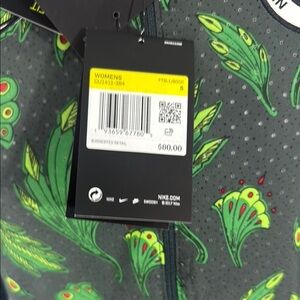 Eye-catching jacket with green feather design on black. Nike logo on chest. NWT