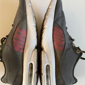 Stylish Nike sneakers in dark olive. Features a sleek design with white accents. Ideal for casual wear.