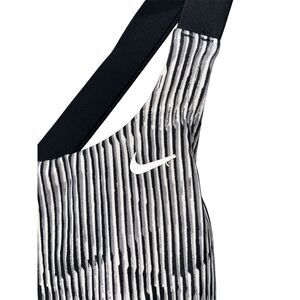 Nike Women's One Piece Swimsuit Large Black White Stripe Front Logo Swimwear