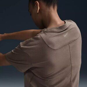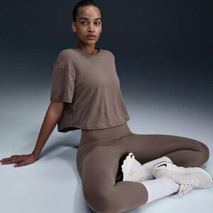 Nike Women's One Relaxed Fit Cropped Short-Sleeve T-Shirt in Mink Brown size XL