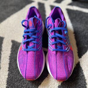 Nike used its ZoomX foam that’s bouncy and energetic with every step. The foam is shaped like a rocker to support you through the three phases of a runner’s stride and help you increase your tempo without sacrificing comfort.
