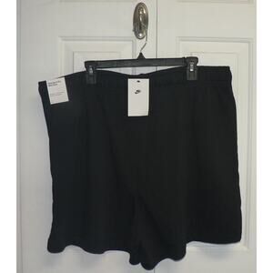 Nike Women's Plus Size Club Fleece Elastic Waist Shorts Black White Logo 2X $45
