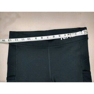 The Nike Women's Pro Therma-FIT Mid-Rise Pocket Leggings in Black, Size M, are a versatile and comfortable option for activewear and casual wear. Made from a blend of polyester and spandex, these leggings feature a pull-on closure, elastic waist, and pockets for convenience. With a skinny leg style and ankle length, they offer a supportive and athletic fit, perfect for various activities like gym training, running, and cross-training. The moisture-wicking fabric ensures dryness during workouts, while the lined interior adds extra comfort. Ideal for all seasons, these leggings are a stylish and practical addition to any wardrobe.