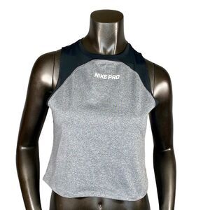 Nike Women's Pro Tight Fit Training Top Size Juniors LG Cropped Style Black Gray