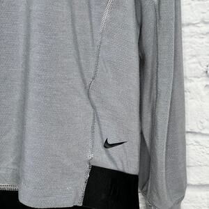 Nike Womens Pullover Long Sleeve Shirt Size M Gray Logo Hem Dri-Fit