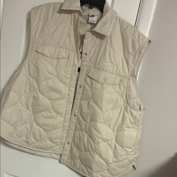 Stay stylish and warm with the Nike Women's Cream Quilted Vest. Perfect for layering, this vest offers comfort and a chic look.