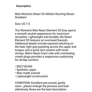 Nike Women's React 55 Athletic Running Shoes Sneakers Size 7.5 Gray BQ2728-005