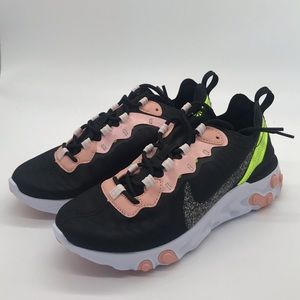 Nike Women's React Element 55 Premium Running Shoes Black Coral CD6964-002 NEW