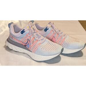 This is a Fantastic Pair of Nike Womens React Infinity Run Flyknit 2 Premium in Pink Foam Blue Tint. Size 9.5. They are in excellent pre-owned condition, with minimal dirt and very little wear. Extremely gently used. Please see pics for details.
