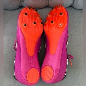 Fuchsia and black never been used track and field cleats. Please note that there are spikes missing and will need to be replaced. Price is reflective of that.
