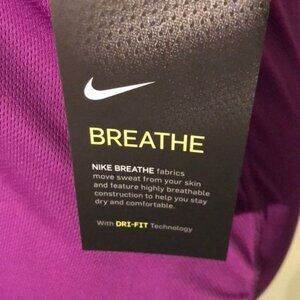 NWT Women’s Nike Running Shirt Xsmall Brand: Nike Size: Xsmall Color: Purple Dusk Fabric Technology: Nike Breathe fabric, Dri-FIT technology Style: Tank top with racerback design Condition: New with tags (NWT) Features: Lightweight, breathable fabric designed to wick away moisture for optimal comfort during runs or workouts.