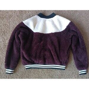 Nike Women's Sherpa Bomber Jacket Size Medium Maroon Full Zip Fluffy Teddy