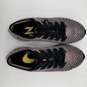 The Nike Women's Pegasus Turbo 2 Sneakers in size 7 are a stylish and athletic choice for women. Featuring a black and gold color scheme with a sleek sneaker design, these shoes are perfect for active individuals looking for both comfort and fashion. The Nike Zoom Pegasus Turbo 2 model offers a cushioned and supportive experience, making them a great option for running or everyday wear. These shoes are preowned, they have been worn maybe 3-4x. Have already been washed prior to listing.