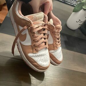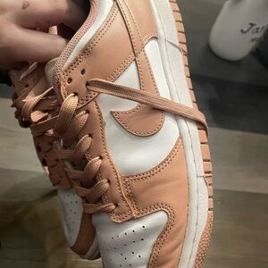 Stylish Nike women's shoes. White base with tan accents. Comfortable and trendy.