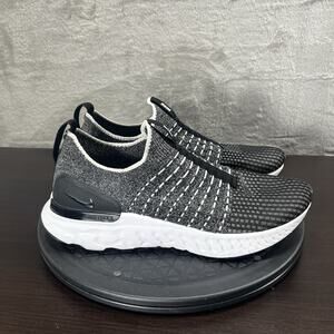 Nike Women's Size 8.5 React Phantom Run Flyknit 2 Black White Slip On Sneakers