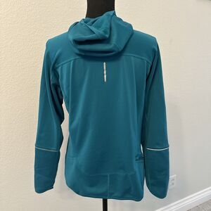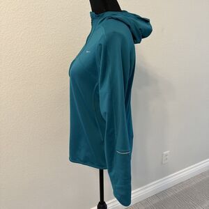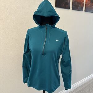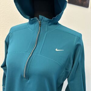 Nike Womens Size Large Running Jacket Dri-Fit Half Zipper Hooded Teal Green