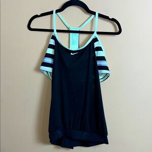 Nike Women’s Size XL Black & Lime Green Striped Built In Sports Bra with Tank