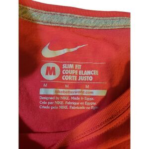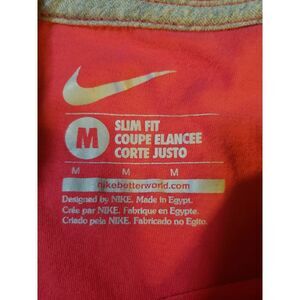 This is Nike Womens Slim Fit Shirt Red M Short Sleeve Crew Neck Pullover Pullover Top. 100% Cotton. Machine Washable.