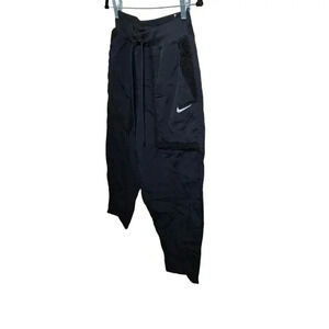 Elevate your workout wardrobe with these Nike Women's Small Sportswear Essential Woven High Rise Pants in Black. Designed for the athletic fit, these jogger-style pants feature the tapered leg style and pull-on closure for the comfortable and secure fit during any gym and training session, cross-training, or running and jogging. Made from the blend of polyester and nylon, these pants are the part of Nike Dri-FIT product line, ensuring the wicking technology to keep you dry and comfortable throughout your workout.